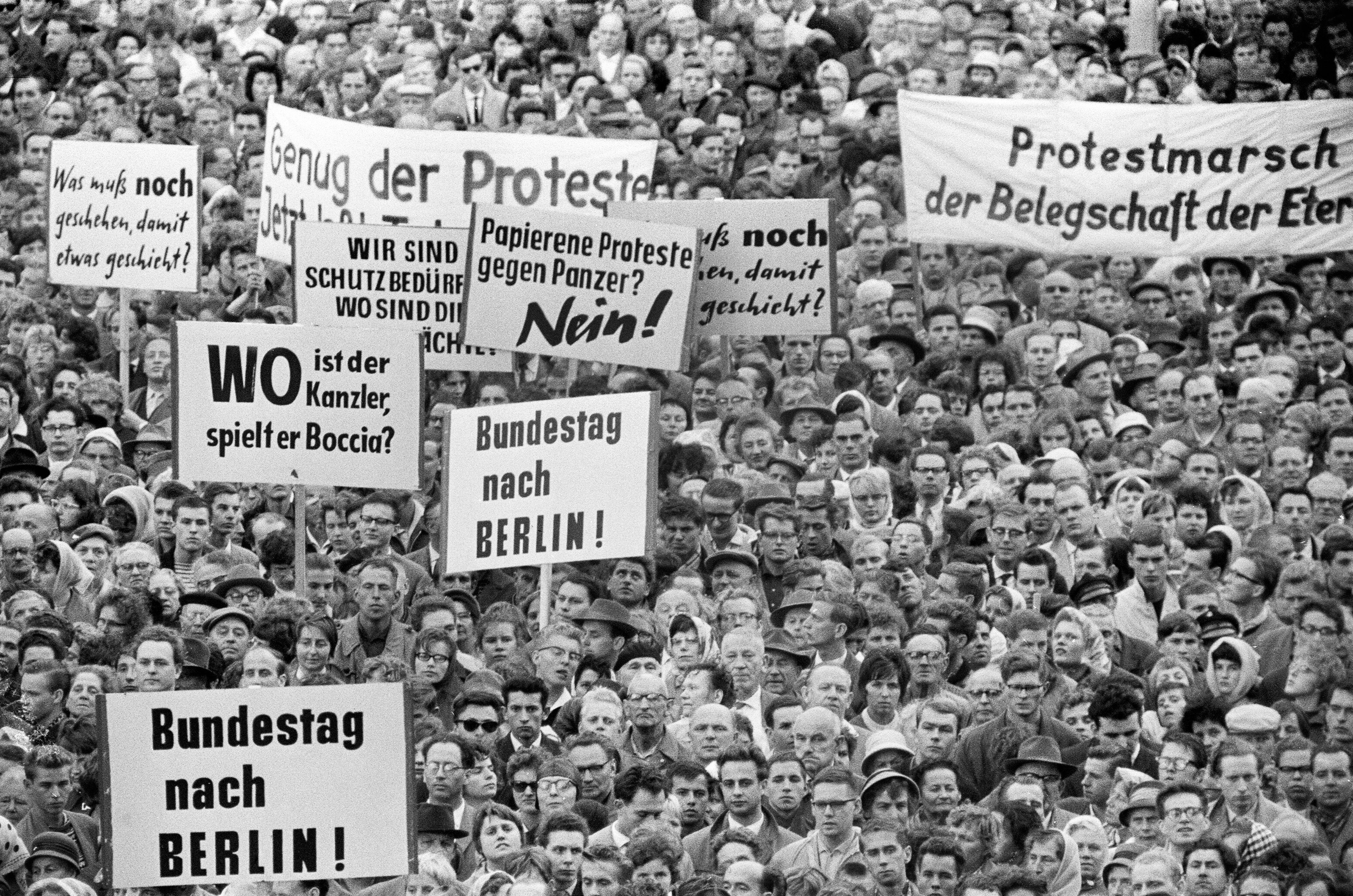 Die Abriegelung der Grenze hatte in Ost- und West-Berlin zu zahlreichen Protesten geführt. In Ost-Berlin wurden Menschenansammlungen sofort auseinander getrieben. Auf der West-Berliner Seite versammelten sich immer wieder Menschen an der Grenze und protestierten lautstark. Am 16. August kamen rund 300.000 Menschen vor dem Schöneberger Rathaus zu einer Protestkundgebung zusammen. -